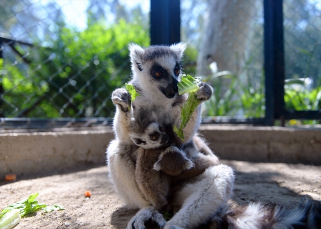 [Fotoğraf: AA]Doğa parkının veterinerlerinin kontrolündeki lemur ailesinin özel beslenme programlarına uymaları sağlanıyor, en sevdikleri sebze meyveler yediriliyor.