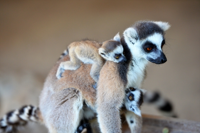Doğa parkının en çok ilgi gören üyelerinden iki yavru sahibi halka kuyruklu lemur, ender şekilde geçen ay ikiz yavruladı.