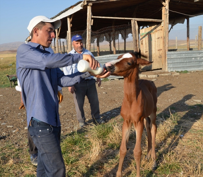 Muş Tabanlı Köyü'nde ikamet eden Veysel Bağlı, doğum sırasında ölen atının yavrusuna bebek gibi bakıyor. "Tunç" ismini verdiği 15 günlük tayın tüm ihtiyaçlarını karşılayan Bağlı, keçilerden sağdığı sütü hayvana biberonla içirerek beslenmesine yardımcı oluyor.