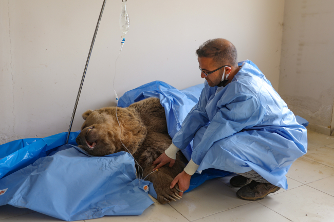 Burada müdahale edilen ayı, tedavisinin tamamlanmasının ardından doğal yaşam alanına bırakılacak.