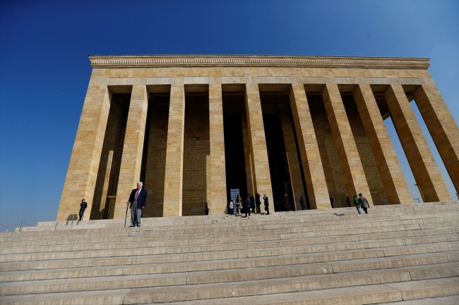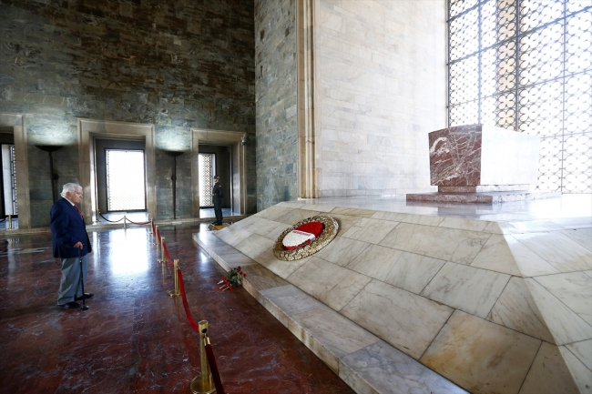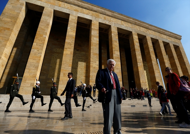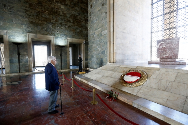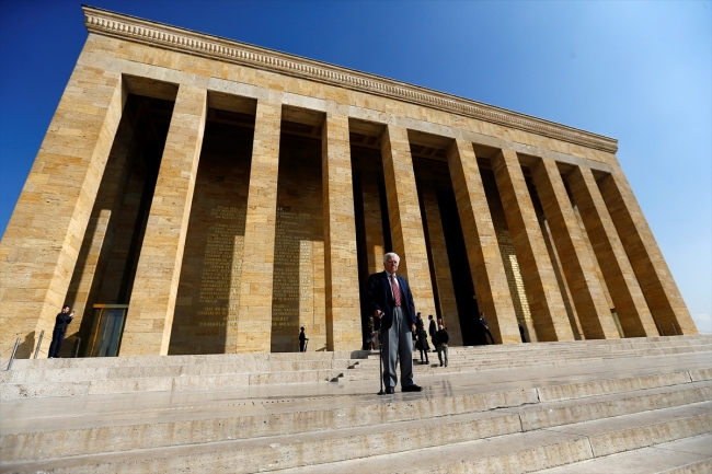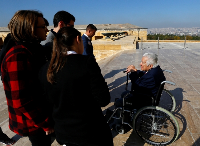 Demirer, ilerleyen yaşına rağmen Atatürk'ün naaşının bulunduğu mozalenin merdivenlerini çıkarak, 1953'teki törende durduğu yere geldi.