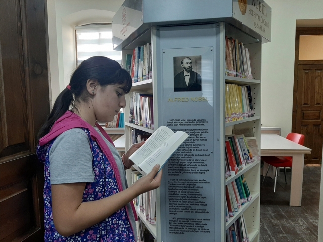 Öğrenciler ve kitap severlerin uğrak yeri olan, yaklaşık 2 bin üyesi ve 30 bin kayıtlı kitabı bulunan kütüphane, konuklarına tarihi bir ortamda kitap okuma imkanı sunuyor.