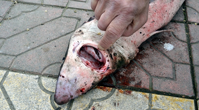 Balıkçı Tahsin Turan, Karadeniz'de istavrit için attıkları ağa 15 kilogram ağırlında 1 metre uzunluğunda camgöz cinsi köpek balığının takıldığını söyledi.