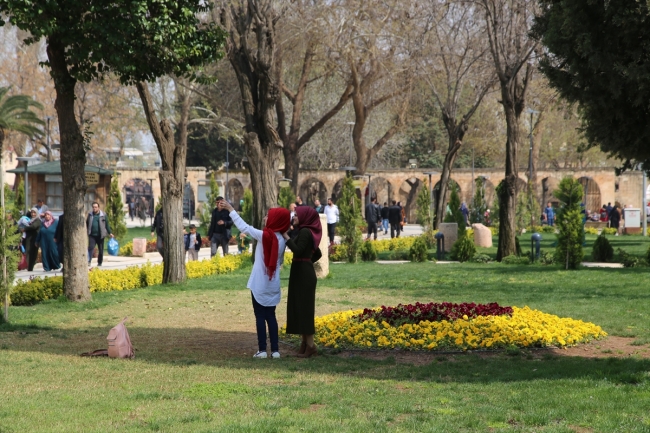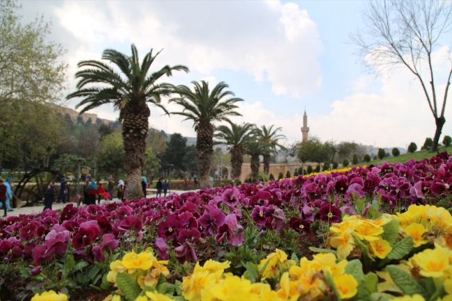 Şanlıurfa Büyükşehir Belediyesince alt ve üstyapı çalışmalarının ardından yeni yüzüyle ziyaretçilerini ağırlamaya başlayan kutsal mekan, ilkbaharla açan çiçeklerin oluşturduğu renk cümbüşüyle ziyaretçilerini karşılıyor.