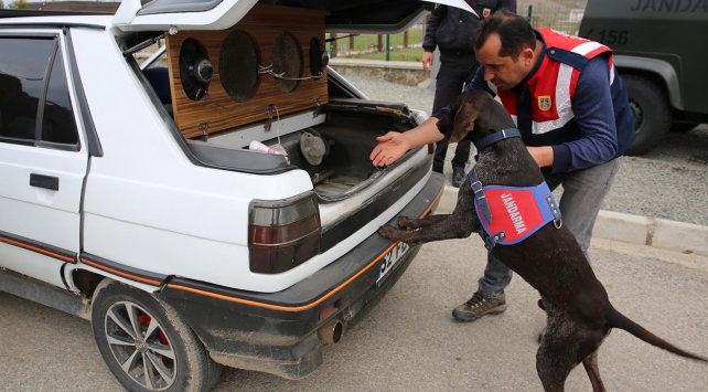 Ordu İl Jandarma Komutanlığı bünyesinde görev yapan eğitimli dedektör köpekleri "Bedel" ve "Kabuk" suçlulara göz açtırmıyor.