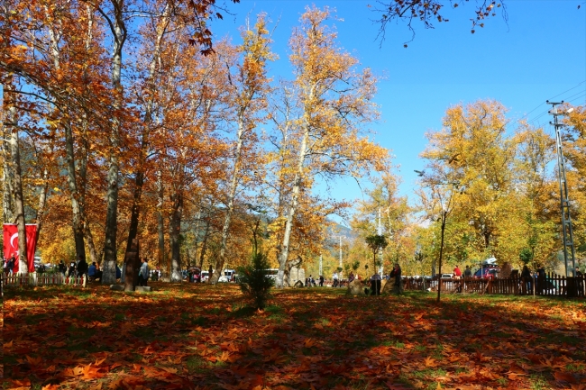 [Fotoğraf: AA]Belemedik'te, özellikle 200 yılı aşkındır ayakta olan çınar ağaçları ve sonbaharda dökülen yapraklar ziyaretçilerin ilgisini çekiyor.