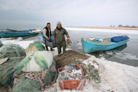 Ağır kış koşulları sebebiyle balıkçıların büyük bölümü faaliyetlerine ara verdi. Bazı balıkçılar ise buzları kırıp, tekneleriyle açıklara ilerleyerek zorlu şartlarda avlanmaya devam ediyor.