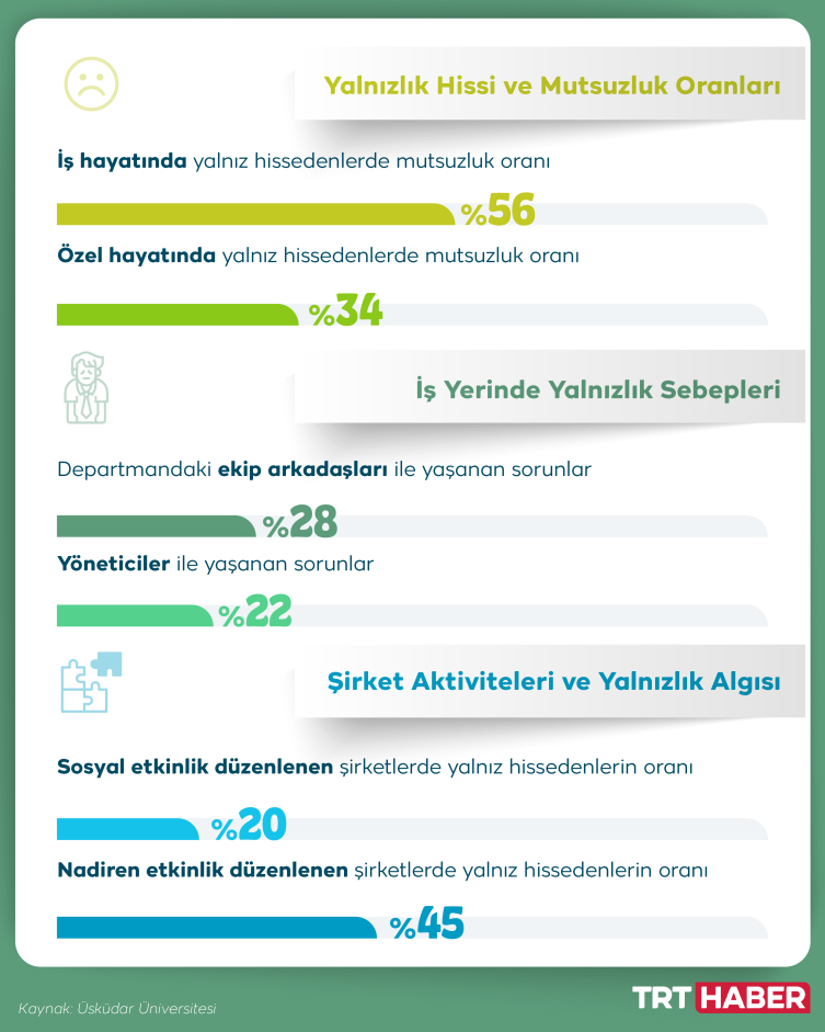 [Grafik: TRT Haber]İş yaşamında çalışanların yalnızlık düzeyini saptamak amacıyla Üsküdar Üniversitesi İTBF Sosyoloji Bölümü Öğretim Üyesi Prof. Dr. Ebulfez Süleymanlı ile yaptıkları araştırmanın detaylarını konuştuk.