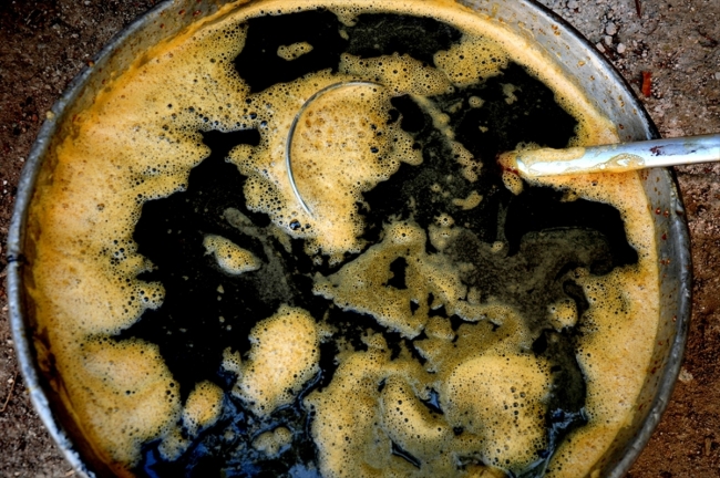 Sabahın erken saatlerinde bağdan toplanan üzümleri yıkadıktan sonra çiğneyip, suyunu ve posasını ayıran kadınlar, elde edilen şırayı tortusu dibine çökene kadar beklettikten sonra büyük kazanlardaki odun ateşinde 4 saat kadar kaynatıyor.