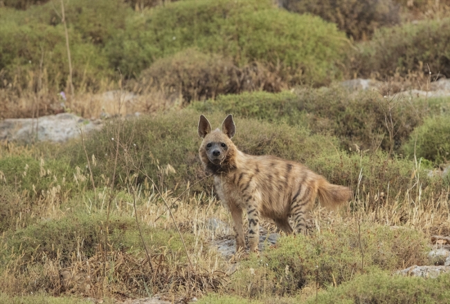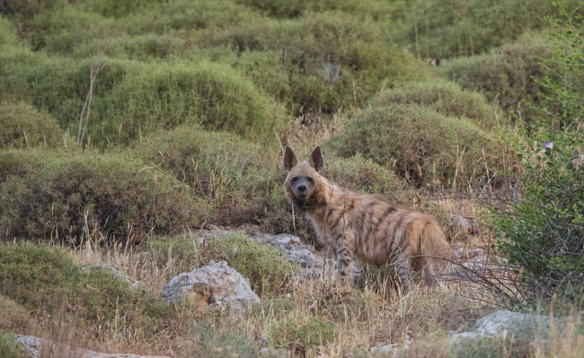 Tarım ve Orman Bakanlığı Doğa Koruma ve Milli Parklar Genel Müdürlüğünce, nesli tehlike altında bulunan çizgili sırtlan Hatay'da görüntülendi.