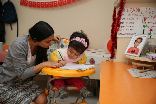 "Başak henüz yürüyemiyor. El kaslarını çok fazla kullanamıyor, bu da Başak'ı çok etkiliyor. Okula başlamadan önce Başak birçok şeyi bilmiyordu. Okula başladıktan sonra evde eğitim alarak renkleri ve şekilleri öğrendi. Şimdi harfleri öğrendi, birleştirmeleri de yakında yapacak ve okumaya geçecek."