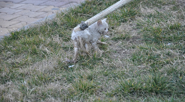 Çukurdan çıkarılan kedi, sitenin bahçesine bırakıldı.
