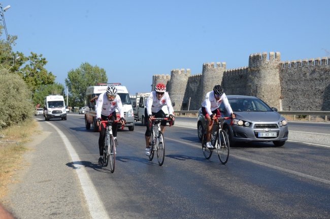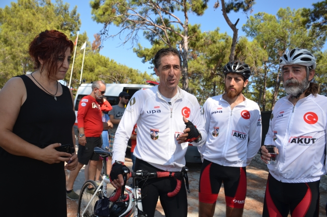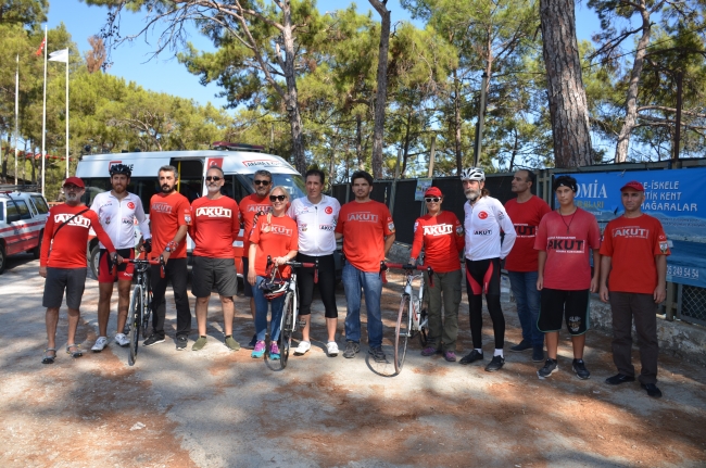 Sinop'dan 12 Ağustos'ta yola çıkan AKUT sporcuları Mehmet Murat Boz, Derya Keçeçi ve Mahmut Doğrugil bisikletle 6 etapta toplam bin kilometre yol kat ederek Anamur'a ulaştı.