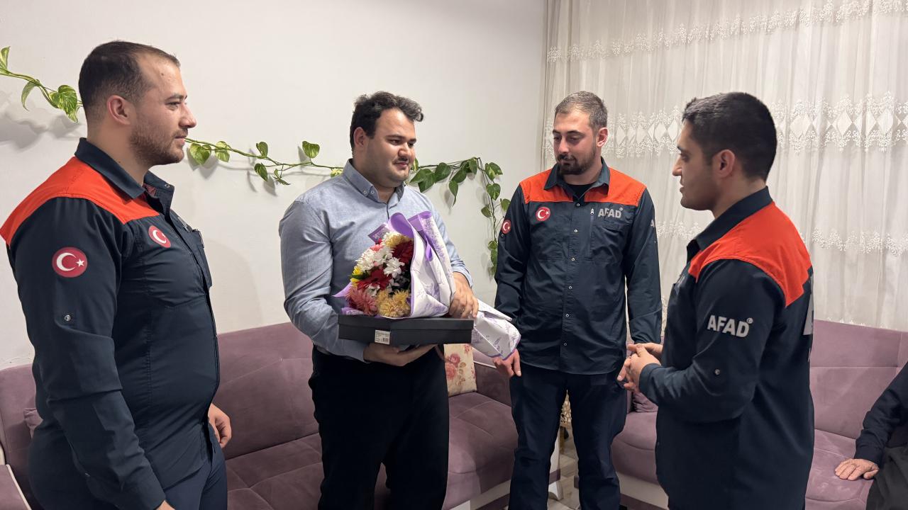 Yaklaşık 4 saat süren çalışmayla depremden 8 saat sonra kurtarılan genç aşçıyla iletişimi koparmayan arama-kurtarma ekibi, Deniz'e afetin 3. yılında sürpriz ziyarette bulundu. Ziyarette duygusal anlar yaşandı.