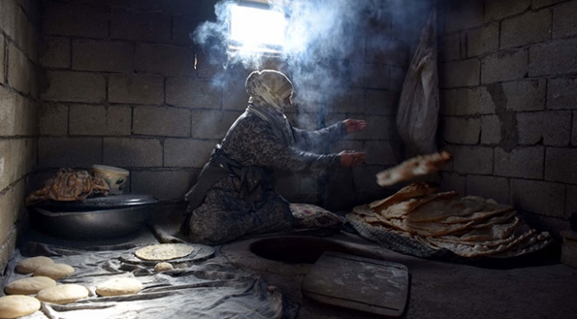 Merkeze bağlı Yelalan köyündeki kadınlar, dondurucu soğuğa rağmen sabahın erken saatlerinde yaktıkları tandırlarda ekmek pişiriyor.