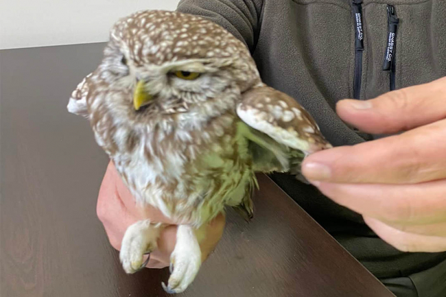 Iğdır'ın Aras Dağları eteklerinde devriye gezen Suveren Jandarma Komutanlığı ekipleri, hava sıcaklığının eksi 13 dereceye düştüğü bölgede hareketsiz halde yerde yatan bir kukumav kuşu buldu.