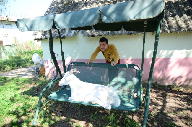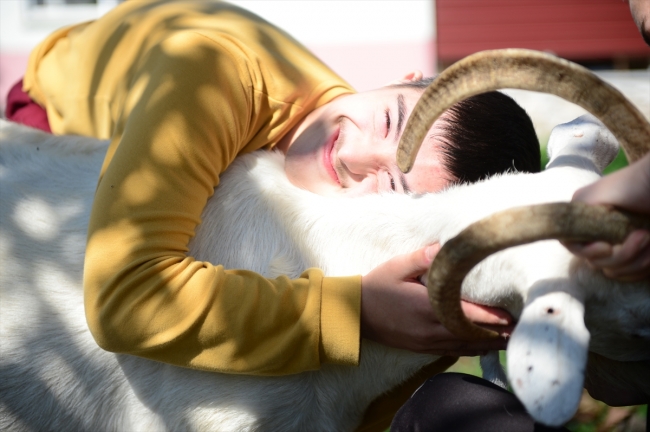 Sakarya Nilüfer Özel Eğitim İş Uygulama Merkezi öğrencisi Yasin Soyalp'in dedesi, hayvan sevgisinin çocukların öz güvenlerinin artması ile sosyal beceri ve empati yeteneklerinin gelişmesine katkı sağladığı düşüncesiyle iki keçi satın aldı.