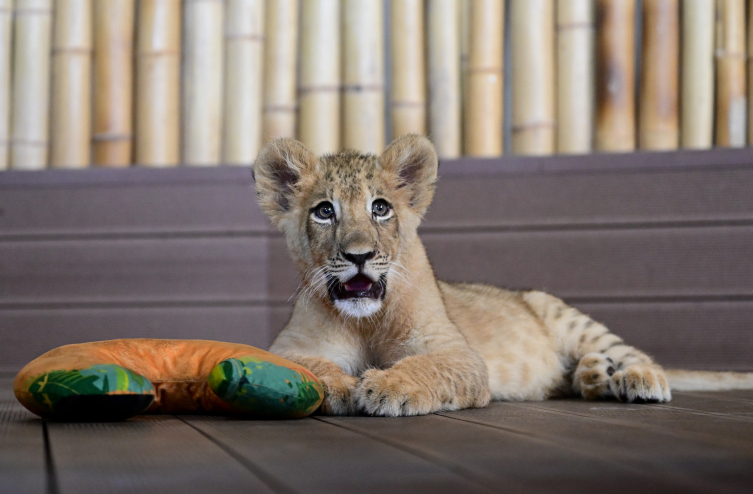Veteriner hekim evinde aslan yavrusu baktı