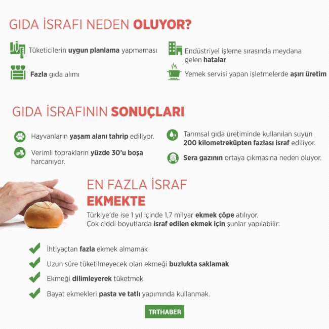 Türkiye’de ise 1 yıl içinde 1,7 milyar ekmek çöpe atılırken, 214 milyar liralık gıda israfı yapılıyor.