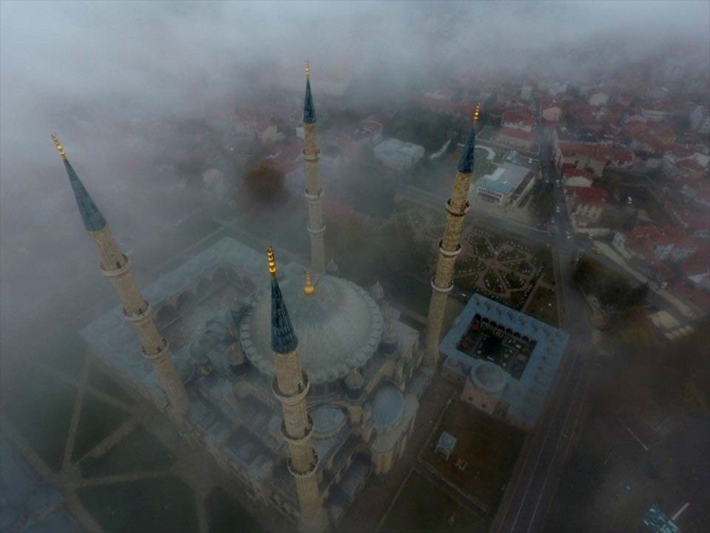 Sis altında kalan, Mimar Sinan'ın eseri Selimiye Camii, seyrine doyumsuz manzara oluşturdu.
