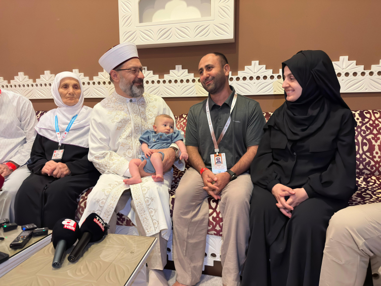 Türk hacı adaylarının en yaşlıları 98 yaşındaki Ayşe Kızıldağ ve en küçüğü 3 aylık bebek Baybars Demir Mekke’de Diyanet İşleri Başkanı Ali Erbaş ile bir araya geldi.