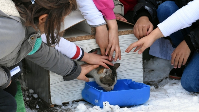 Yuvalara gelen kedilerle oynadıklarını dile getiren Özçelik, "Öğretmenlerimiz ve müdürümüz hayvanlara süt ve yemek koyuyorlar. Hayvanlar mamalarını yiyor mu diye teneffüslerde bakıyoruz. Yuvaların girişlerine süs oyuncakları koyduk. Onlarla oynuyorlar mu diye bakıyoruz. Çok mutlu oluyoruz, hayvanlar üşümüyor, böylelikle içimiz de rahat oluyor" diye konuştu.
