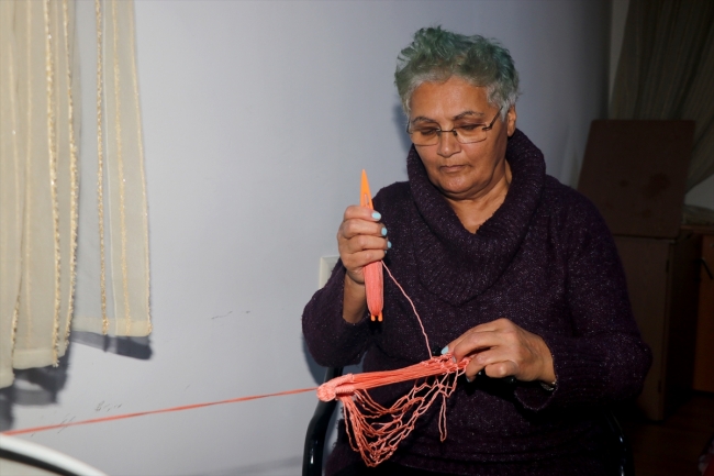 Bazı kadınlar da iplerle pazar filesi hazırlıyor.