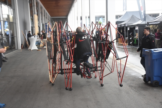 Ziyaretçilerin ilgisinin yoğunlaştığı araçlardan biri de "örümcek bisiklet" olarak nitelendirilen özel tasarım oldu. Bisiklet, pedallarına basıldıkça örümceği andıran hareketlerle ilerliyor.