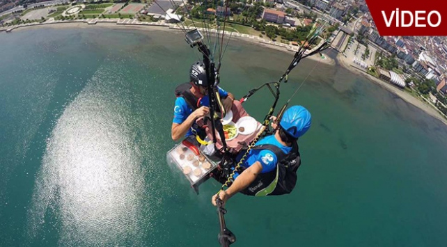 Ordu'da yamaç paraşütü yapan iki adrenalin tutkunu bir ilke imza attı. Önceki uçuşlarında gökyüzünde tavla oynayan gençler, bu kez 530 metre yükseklikte mangal keyfi yaptı.