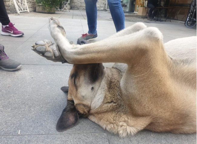 Sevimli köpek, çevresindekilerin ve çocukların ilgisine aldırış etmedi.