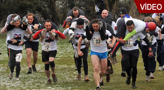 İngiltere'de 10. kez düzenlenen eş taşıma yarışması renkli görüntülere sahne oldu.