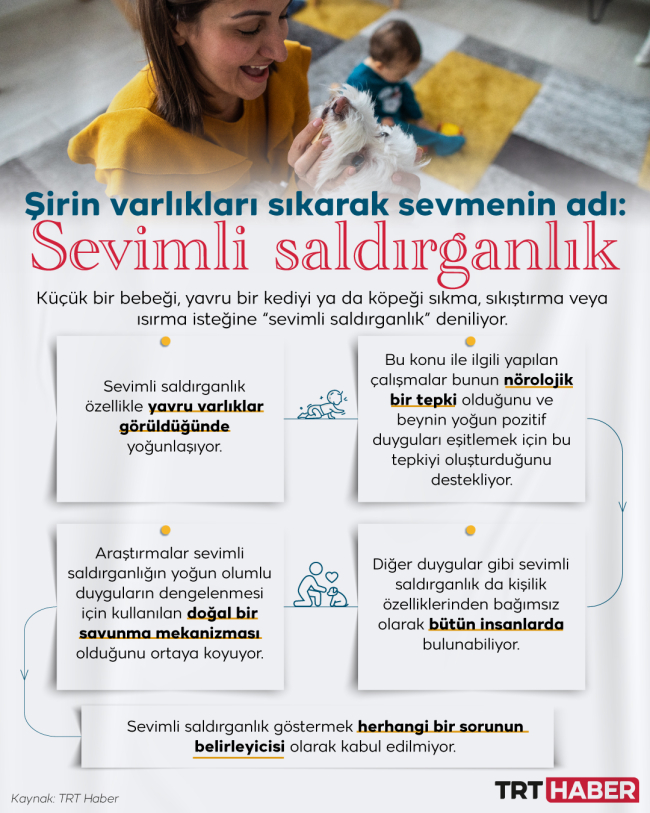 Altınbaş Üniversitesi Psikoloji Bölümü Öğretim Üyesi Dr. Ayşegül Güner Algan, sevimli saldırganlığın yaygın görülen bir kavram olduğunu ifade ediyor. Özellikle yavru varlıklar ya da imgeler görüldüğünde açığa çıktığını vurguluyor. Peki, sevimli saldırganlık psikolojik bir sorun mu? Algan bu soruya şöyle yanıt veriyor: