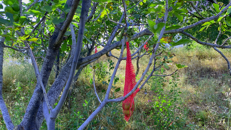 İncirler iri fındık büyüklüğündeler ve parlak bir görünümleri var. Bahçenin bulunduğu yere göre değişir elbette ama bizim haber için geldiğimiz İzmir Tire'de haziran ortası ilek için en doğru zaman. İlekler file içinde tel kancalarla ağaçlara asılıyor. Güneşle uyanan doğa, incirler için harekete geçiyor.