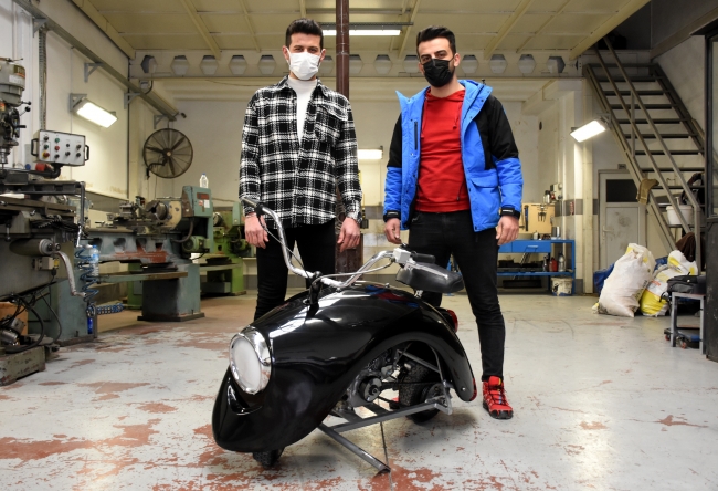 Kaplumbike adını verdikleri motosiklet için patent başvurusunda bulunmaya hazırlanan gençlerden Yusuf Kula örnek tasarımlardan esinlenerek çalışmaya başladıklarını anlattı: