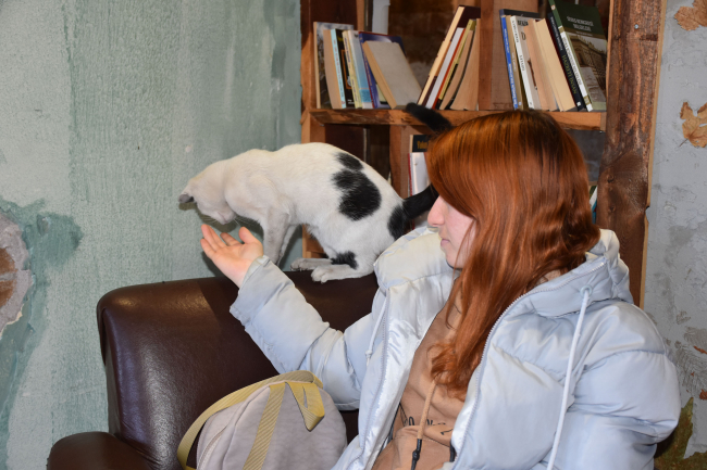 Sokak hayvanları için çalışmalarını gün geçtikçe artıran Aksoy'un işlettiği kafeye alışan kedi ve köpekler, işletmenin içinde ve çevresinde kalmaya başladı.