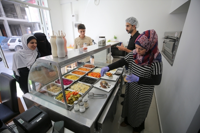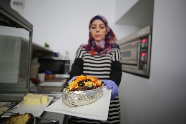 Filistinli Abir el-Hasini ve eşi Bilal'in sadece bir hafta önce açtığı kumpirci dükkanı, büyük bir başarı elde ederek şimdiden Gazze'nin güneyindeki meşhur mekanlar arasına girmeyi başardı.