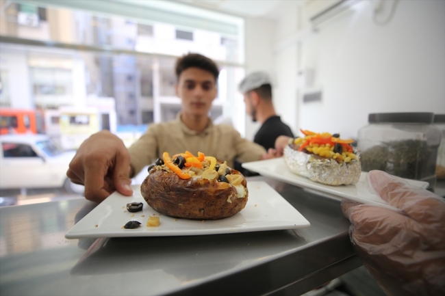 Ana malzemesini patates ve kaşar peynirinin oluşturduğu kumpir, Gazze mutfağına yabancı olmasına rağmen tat avcılarının beğenisini topladı.