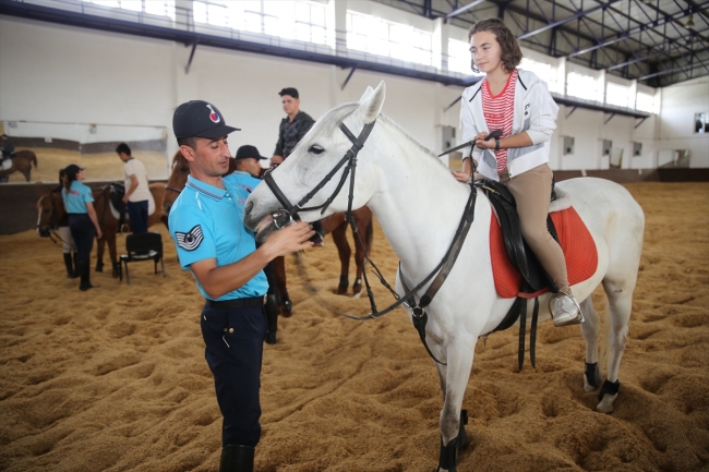 Daha sonra atlı birliklerin çalışmalarıyla ilgili bilgi verilen öğrenciler ata bindi.