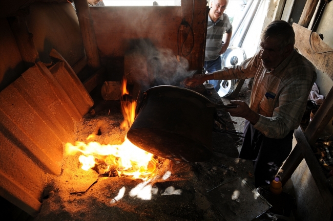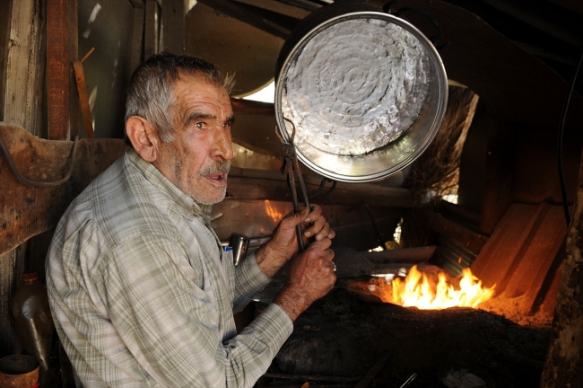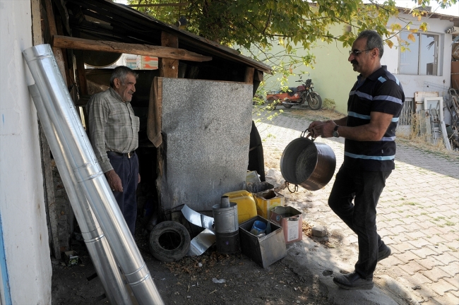 Korkmaz, "Yazın İstanbul'dan ziyarete memleketine gelenler bakır kaplarını da getirip burada kalaylatıyor. Bu mesleği babamdan öğrendim" ifadelerini kullandı.