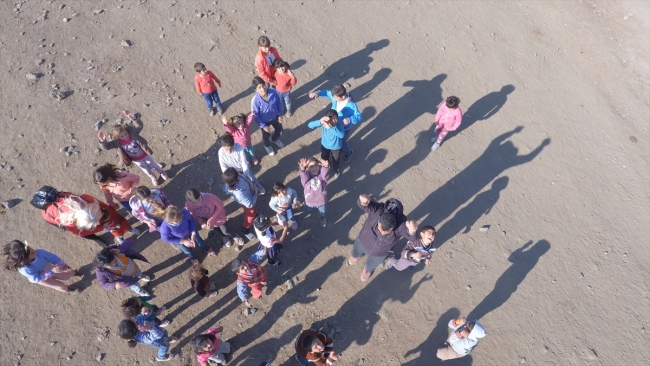 Çocuklar onlar için gelen hediyeleri bırakıp, meraklı ve şaşkın bakışlarla peşinden koştukları cihazı yakalamaya çalıştı. Çocukların büyük sevinçle drone kovalaması çevredekileri gülümsetti.