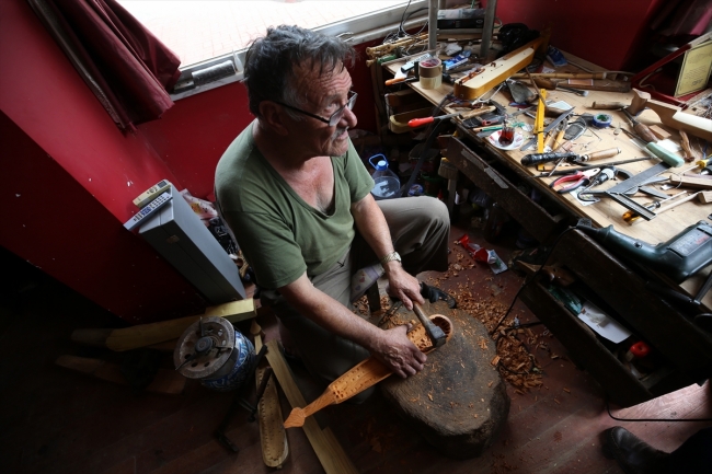 Ahşaba şekil verme sevgisinin ilkokul yıllarında başladığını anlatan Sancak, "Köydeki okulla evimin arasını 15 dakikada yürürdüm. Mahalle arkadaşlarıma çantamı verip okula gidene kadar çakıyla tahta parçasını kemençe şekline sokardım. Her gün aynı işi yapardım. O heves bende çocukken vardı" dedi.