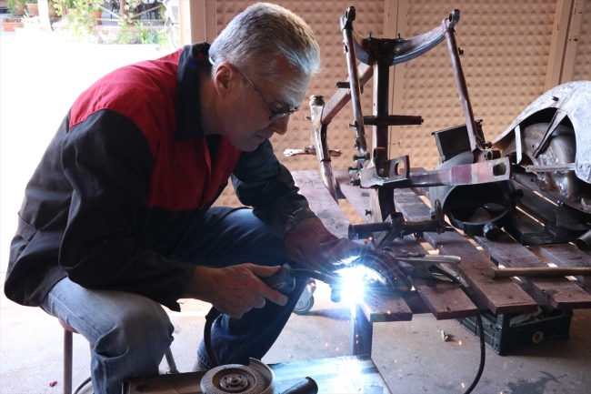 [Fotoğraf: AA ]Köksen, garajındaki 15 klasik motosikleti de işinden arta kalan zamanlarda tamir edip, yeniden ilk günkü haliyle kullanılır duruma getirmek istiyor.