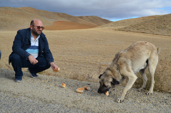 “İsim verdiğim köpekler, aracımı tanıyıp beni koşarak karşılıyor. Arabadan indiğim zaman, adeta sevinç gösterisinde bulunuyorlar. Benim ricam; durumu müsait insanların, böyle hayvanlara yardımcı olmaları. Çünkü önümüz kış ve bakıma muhtaçlar. Bölgede görev yapan jandarma ekipleri, sağlık görevlileri ile bir bankanın müdürü, buradan geçerken hayvanlara su ve mama bırakıyor. Fakat her geçen su ve yem verse hiç aç kalmazlar."