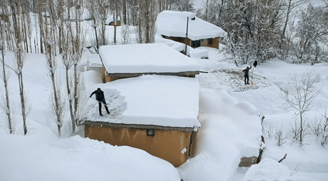 Köylüler evlerinden dışarıyı görebilmek için kardan kaybolan pencereleri ve yer ile dümdüz olmuş ahır ve tandır damlarını bulmak için kardan temizlemek zorunda kalıyorlar.