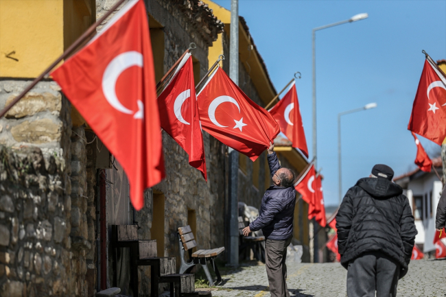 [Fotoğraf: AA]Evlerin duvarlarının yanı sıra sokaklardaki aydınlatma direklerine de asılan Türk bayraklarına köy halkı gözü gibi bakıyor.