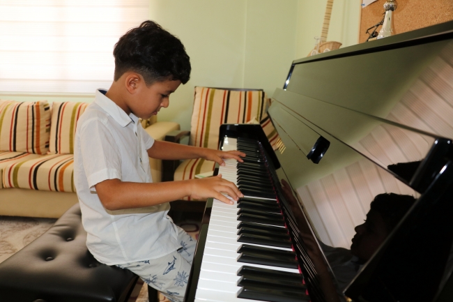 Aydın'da yaşayan 8 yaşındaki Doğu Balyemez, 8 aydır piyano çalıyor.