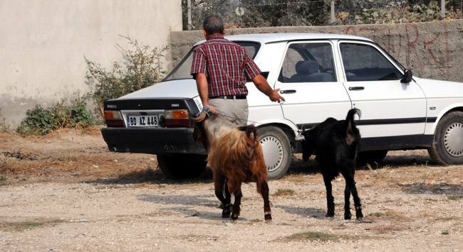 Vatandaşların sıkı pazarlık sonucu aldığı kurbanlıkları, götürürken ve araçlarına yüklerken de ilginç görüntüler ortaya çıktı.