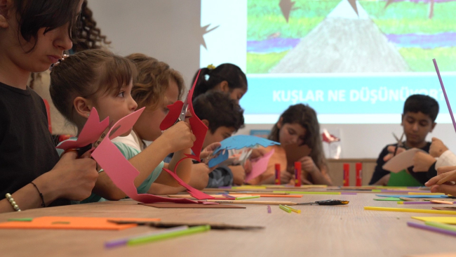 ‘Kuşlar Ne Düşünüyor?’ atölyesi, ‘Kuşlar ne düşünüyor, bizimle konuşabilselerdi ne derlerdi, kuşları izleyerek neler öğrenebiliriz?’ gibi sorularla çocukların dinleme, gözlemleme, yoğunlaşma, belgeleme ve araştırma becerilerini geliştirmeyi hedefliyor. Yaşları 8 ila 16 arasında değişen 20 çocuk atölyede kuşları ve doğayı korumayı öğreniyor.