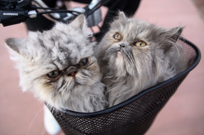 Latte'yi omzuna, Duman'ı ise bisikletin sepetine koyarak Antalya'nın her yerini gezdiklerini anlatan Keleş, "Hem benim için spor oluyor hem de kedilerimi gezdirmiş oluyorum. Evden çıkarmadığım günlerde huzursuz oluyorlar. Bisikleti görünce hemen sepetine atlıyorlar. Ben de bisiklete binince Latte sepetten omzuma çıkıyor" dedi.