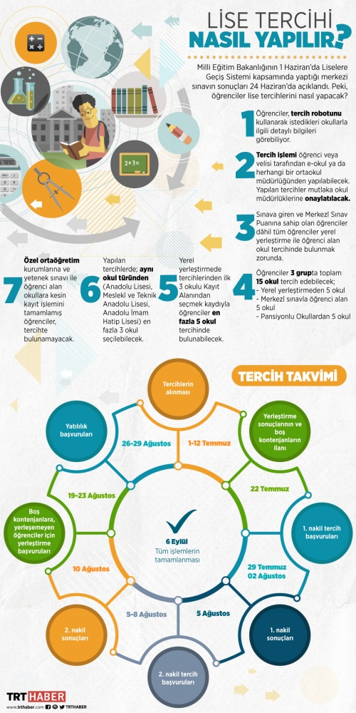 Yerleştirme sonuçları ise 22 Temmuz'da "http://www.meb.gov.tr ve https://eokul.meb.gov.tr" adreslerinden ilan edilecek.